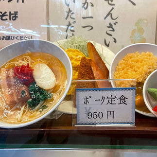 ポーク定食は定番のポーク卵に沖縄そばがついているの嬉しいですね。